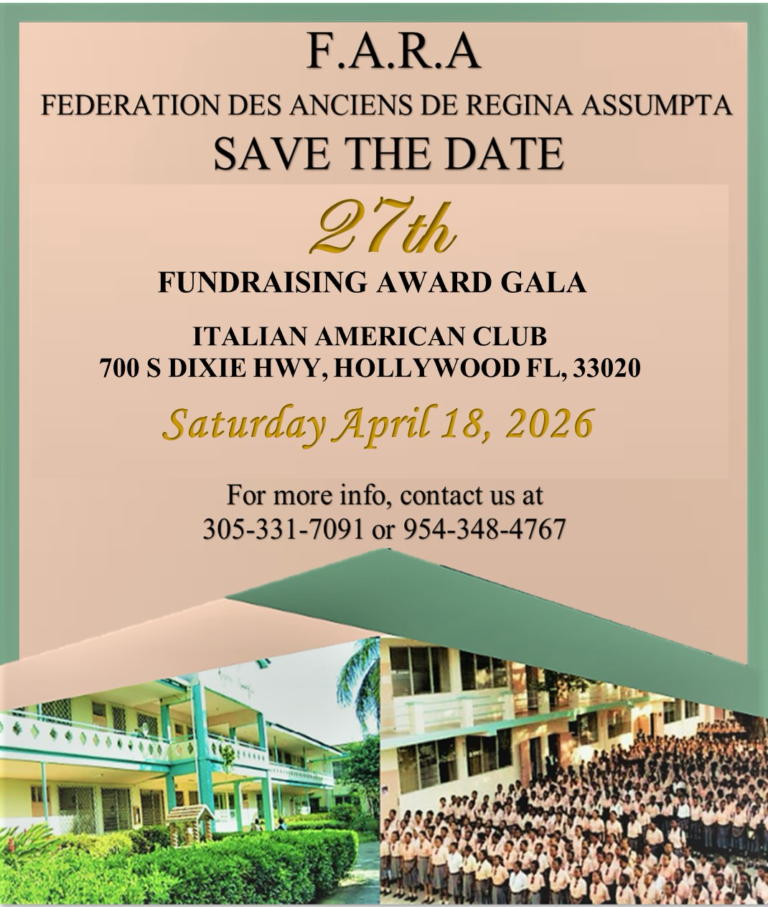 In 1999, three former students of Collège Regina Assumpta (CRA), Marguerite Esther Chevalier-Mompremier, Grace César Achille, and Réséda Célestin, got together in Florida and created the “Fédération des Anciens de Regina Assumpta (F.A.R.A.)”.